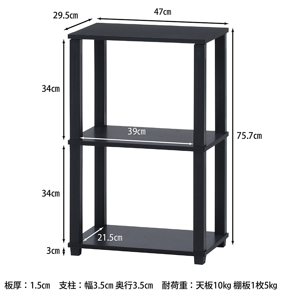 工具不要で簡単組み立て!おしゃれに見せる3段オープンラック。