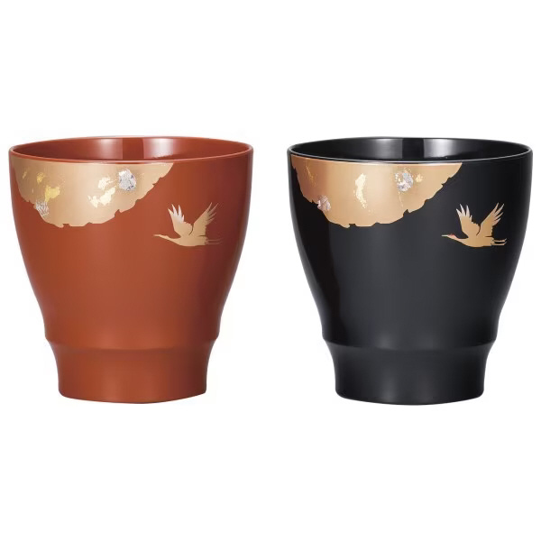 おめでたい鶴の柄が描かれた、漆芸のフリーカップペアです。