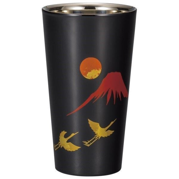 8K-502 漆磨二重ストレートカップ 手描き 富士に鶴 まえじゅう漆器