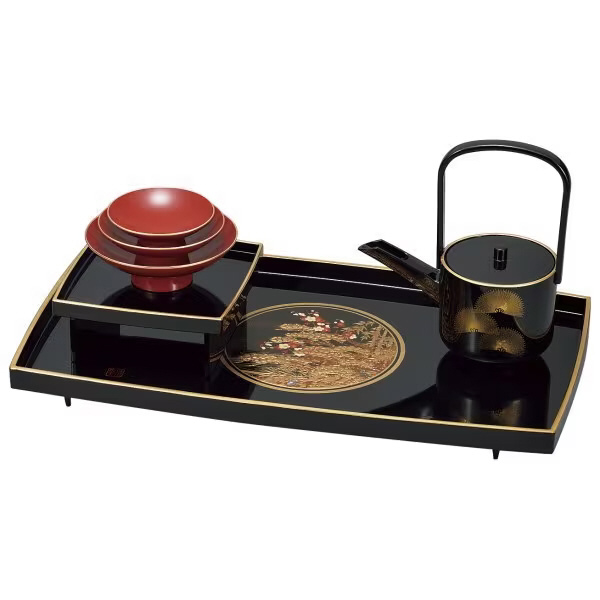 <松竹梅>おめでたいデザインで知られている松竹梅を加賀盛り蒔絵で豪華に仕上げました。屠蘇器、重箱を中心に迎春を強くイメージした松竹梅シリーズです。