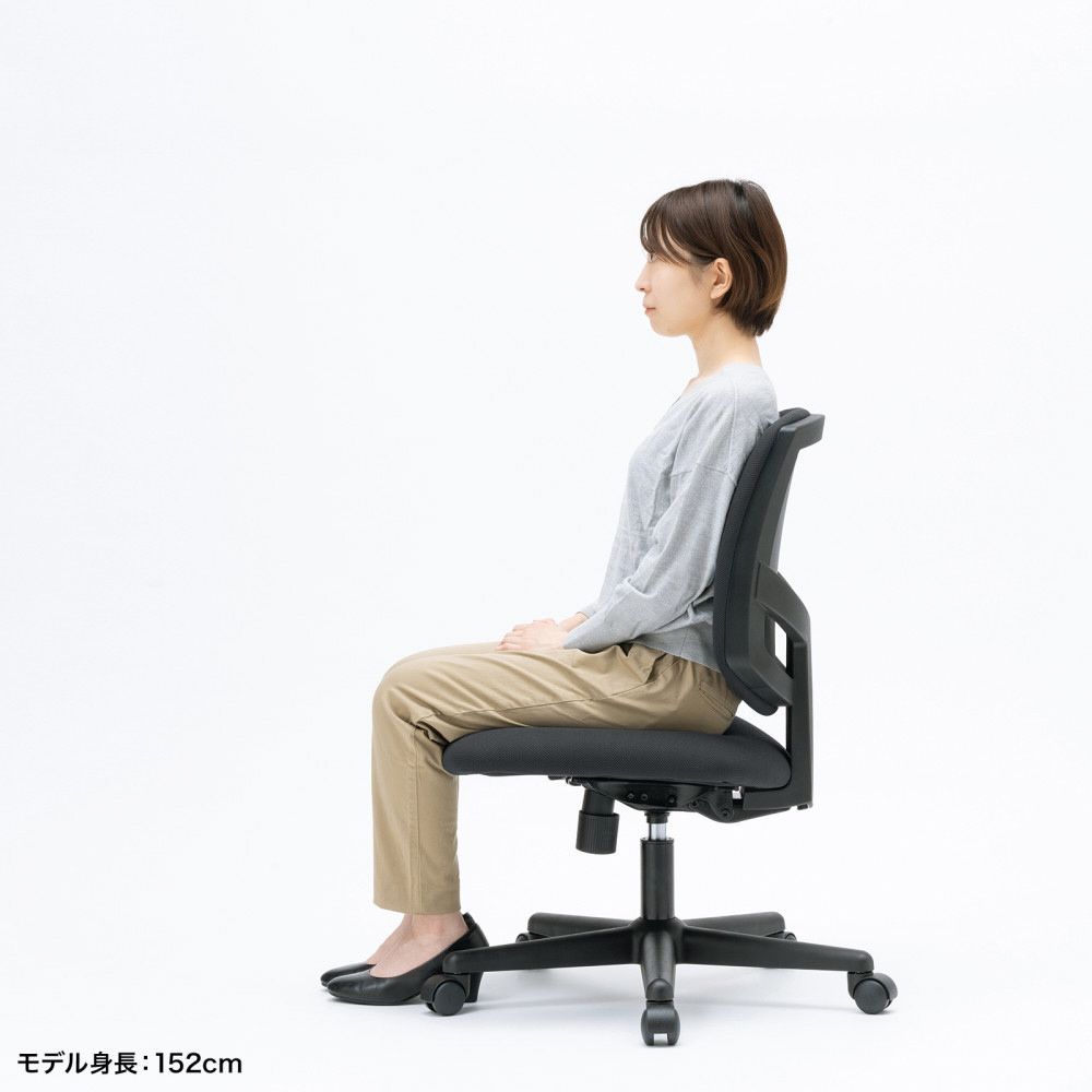 ■小柄な女性やお子様でも脚のかかとがしっかり床に着くよう、チェアの座面を低く設定することができます(最低位430mm)。