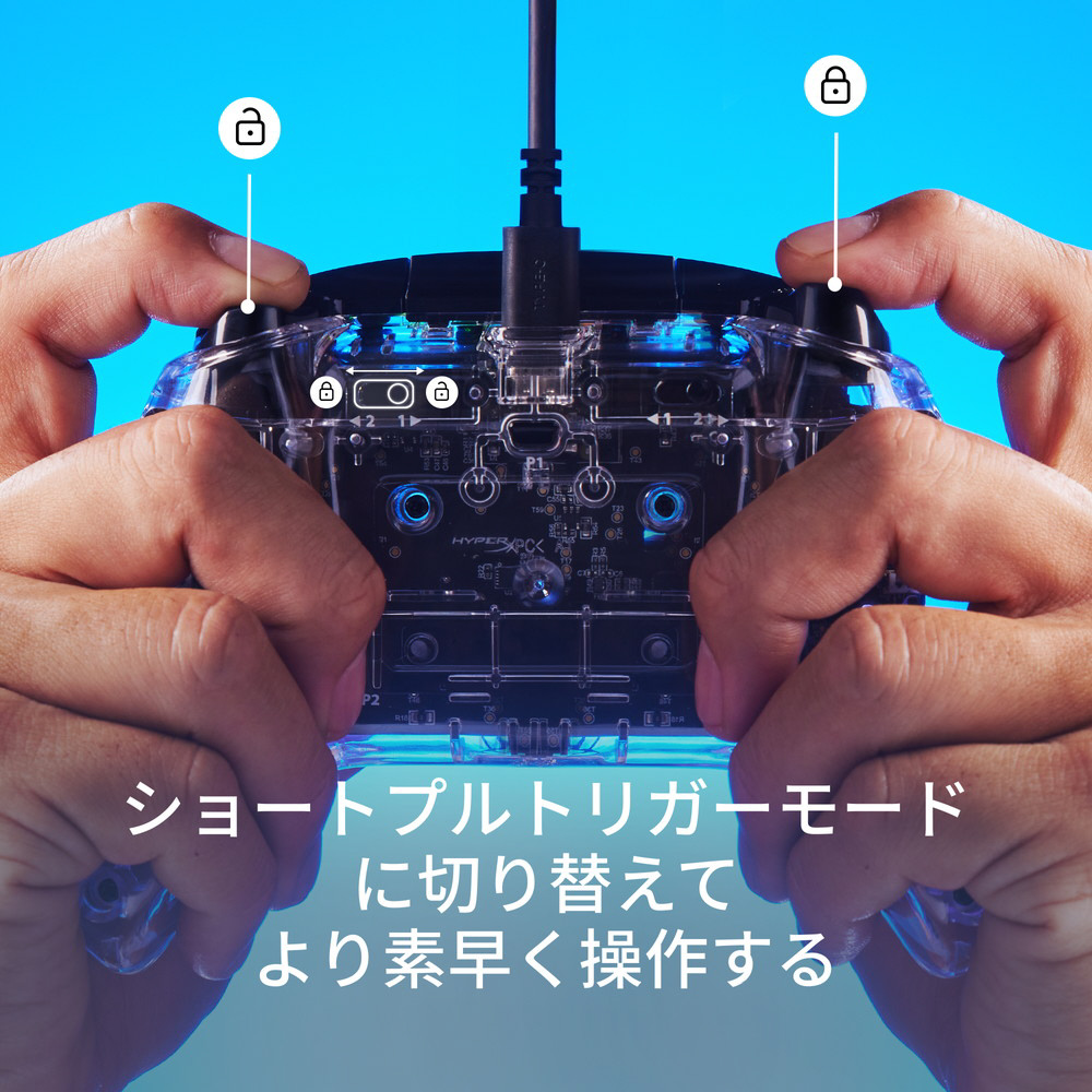 HyperX Clutch Gladiate RGBゲーミングコントローラーは、コントロールをカスタマイズできる高精度コントローラーが必要なXboxゲーマーのために作られています。Xbox公認の有線タイプコントローラーで、デュアルトリガーロックとマッピングの変更が可能な背面ボタンを備えており、自分のプレイスタイルに合わせてコントロールを最適化することができます。