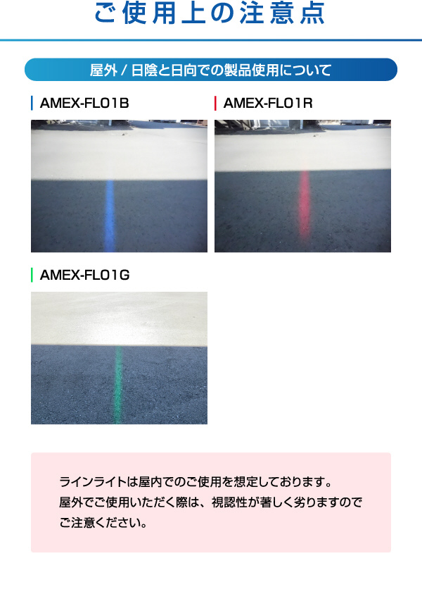 ※ラインライトは屋内でのご使用を想定しております。屋外でご使用いただく際は、視認性が著しく劣りますのでご注意ください。