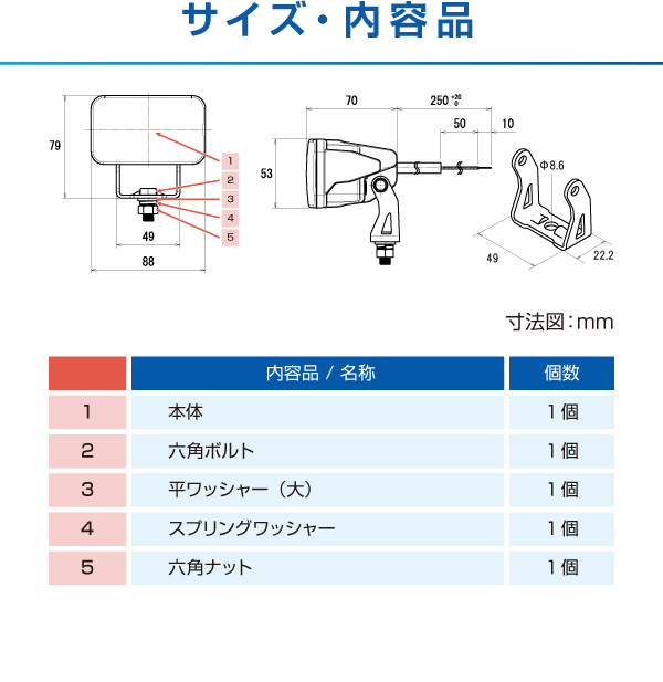 セット内容 本体×1、六角ボルト×1、平ワッシャー(大)×1、スプリングワッシャー×1、六角ナット×1