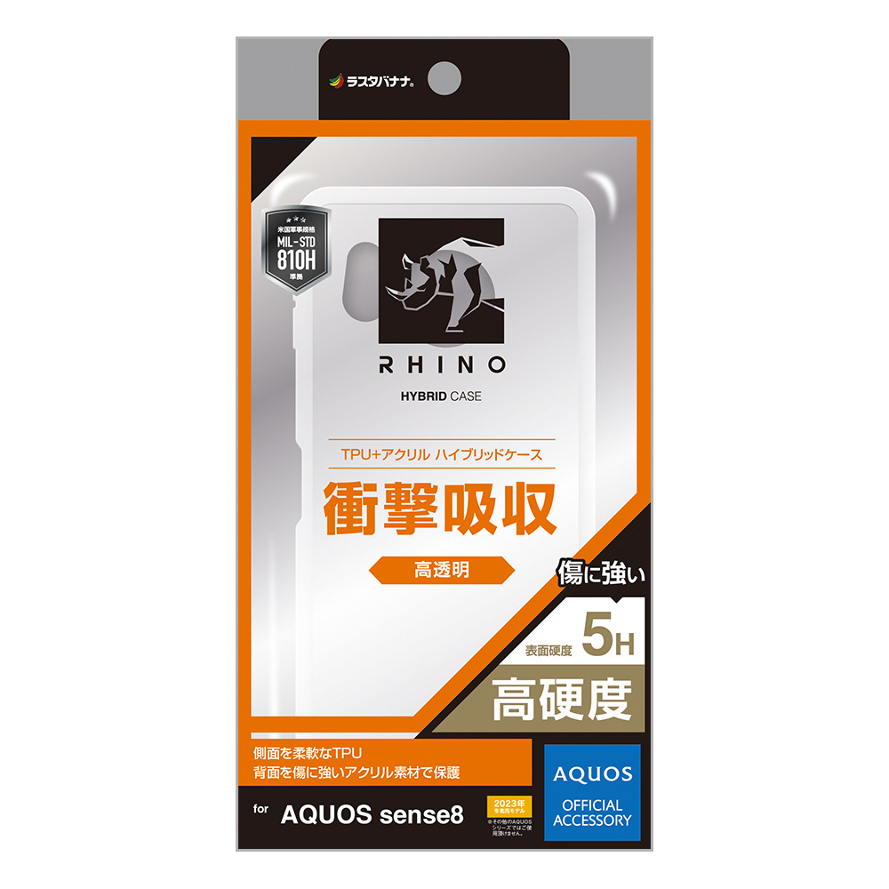 AQUOS sense8(SH-54D/SHG11) ハイブリッドケース RHINO TPU×アクリル 5H 衝撃吸収 クリア 7780AS8HACL