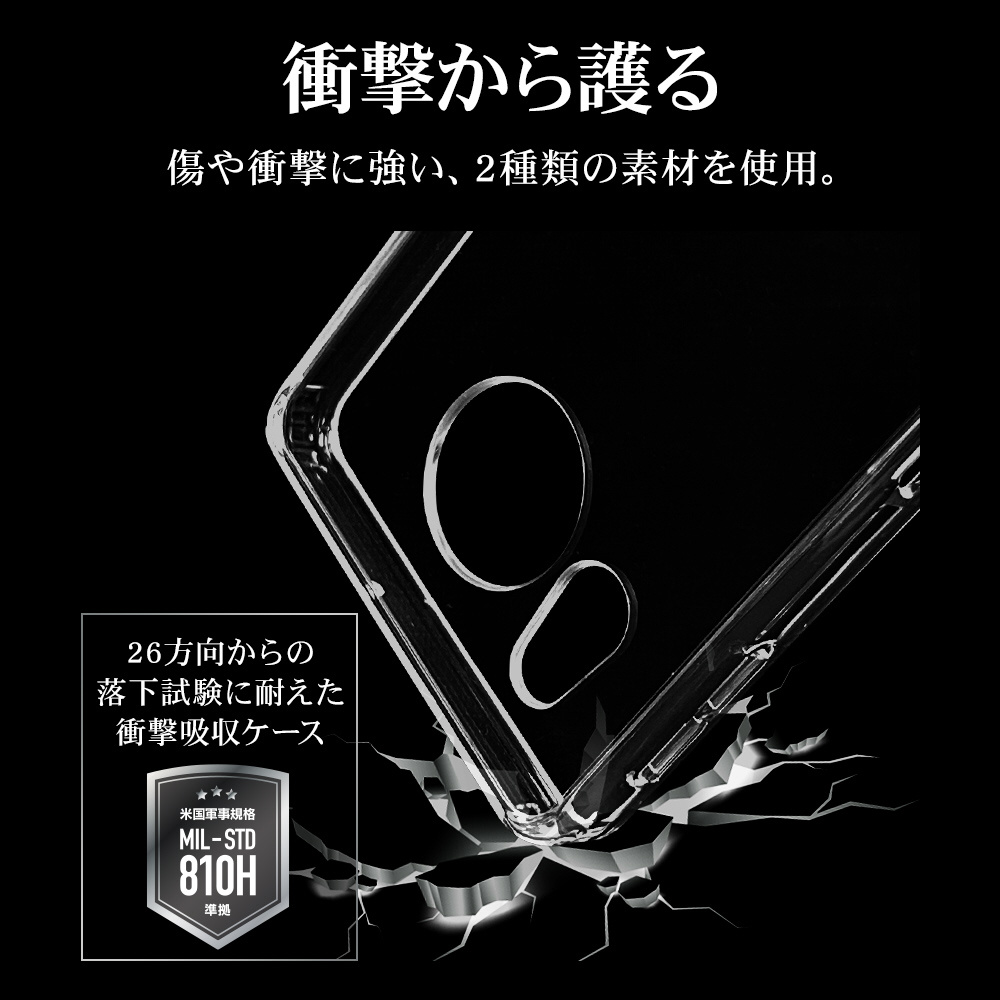 ※衝撃吸収については、一般的なポリカーボネート製ケースと比較した自社検証結果で、無破損、無故障を保証するものではありません。