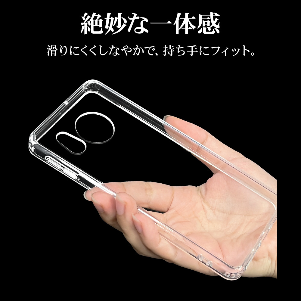 本製品は側面を柔軟なTPU、背面は傷に強いアクリル素材のハイブリッド背面ケースです。