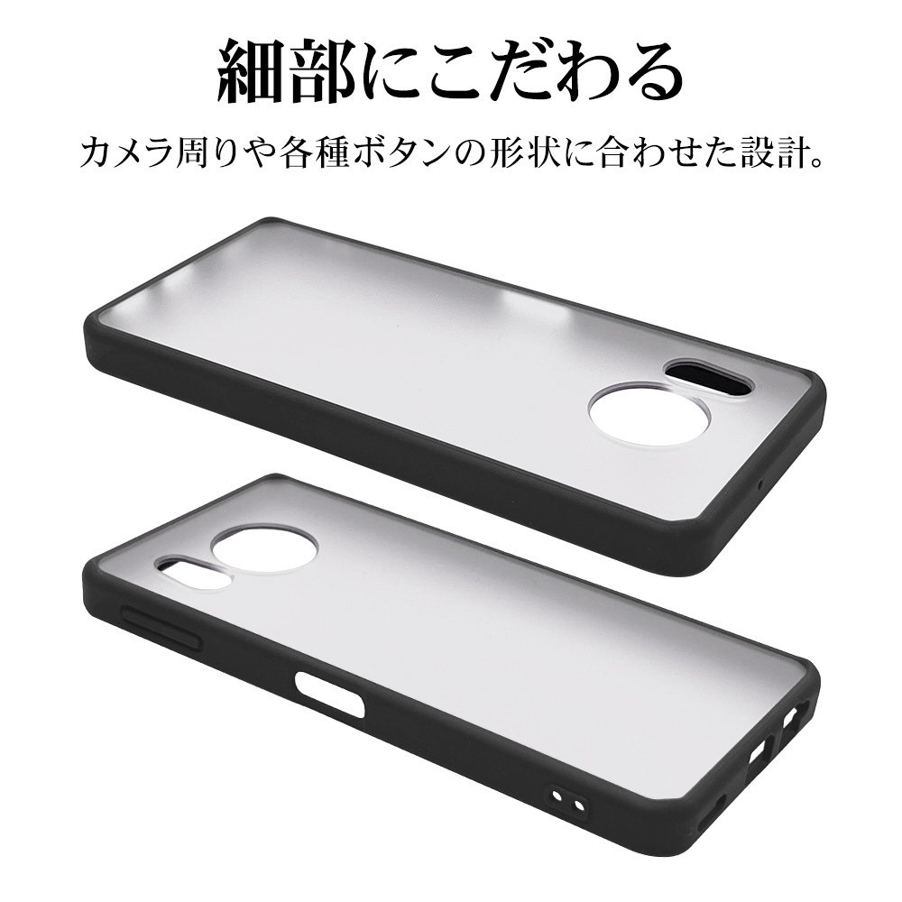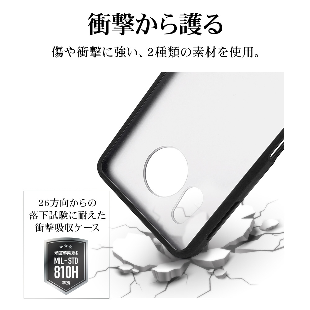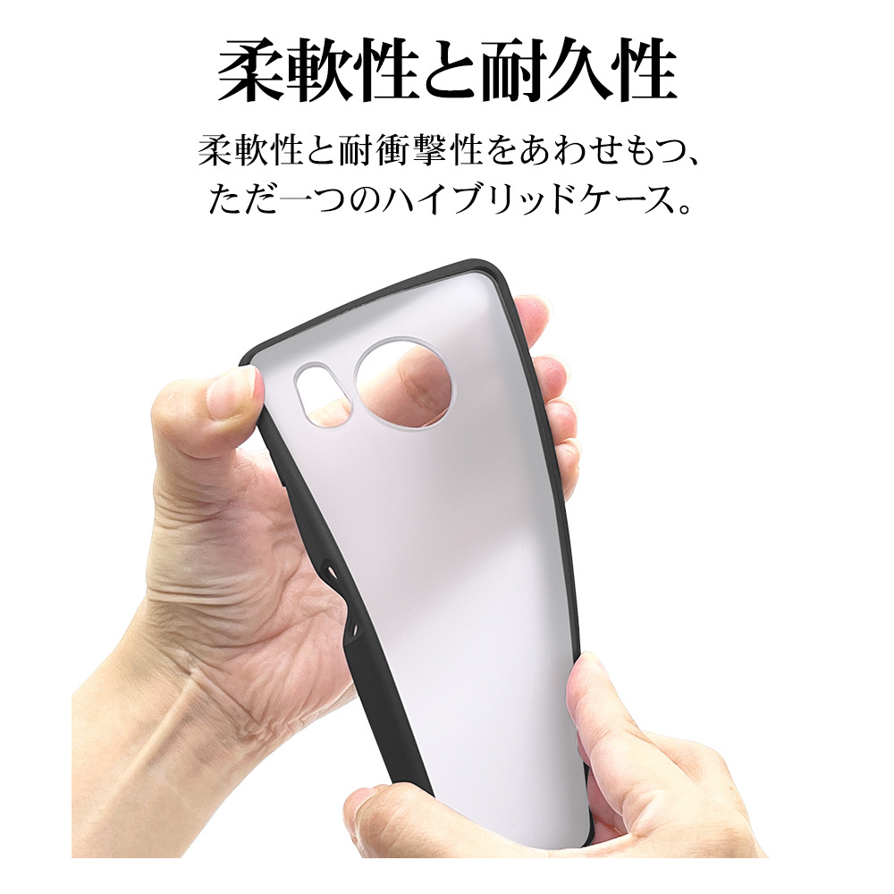本製品は側面を柔軟なTPU、背面は傷に強いアクリル素材のハイブリッド背面ケースです。
