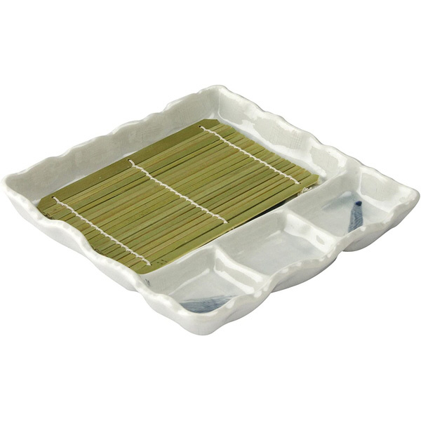 萬古焼 麺の器 仕切 麺皿 プレート 皿 約20cm (すのこ付) ておこし流水