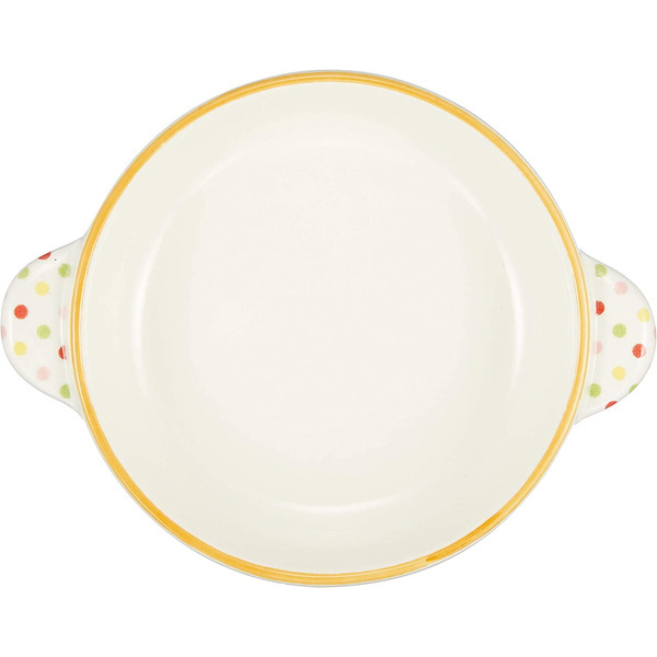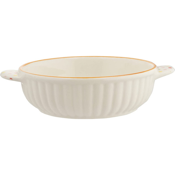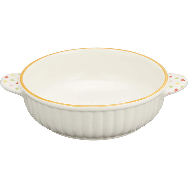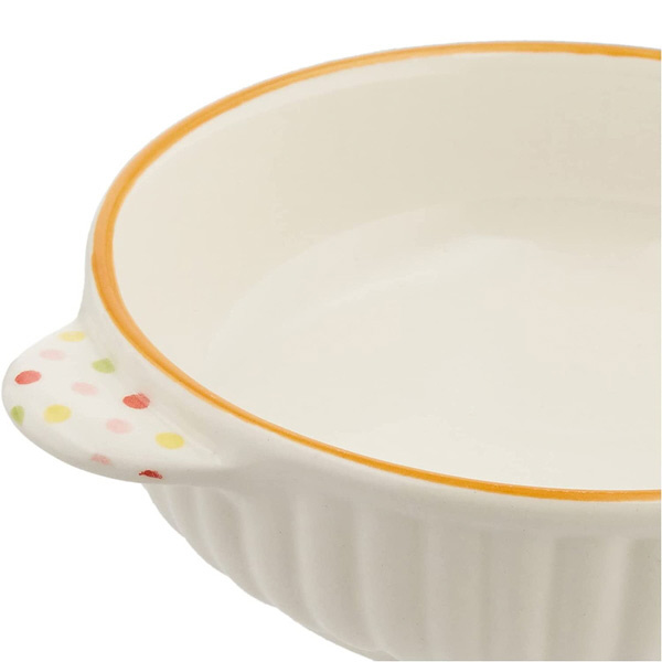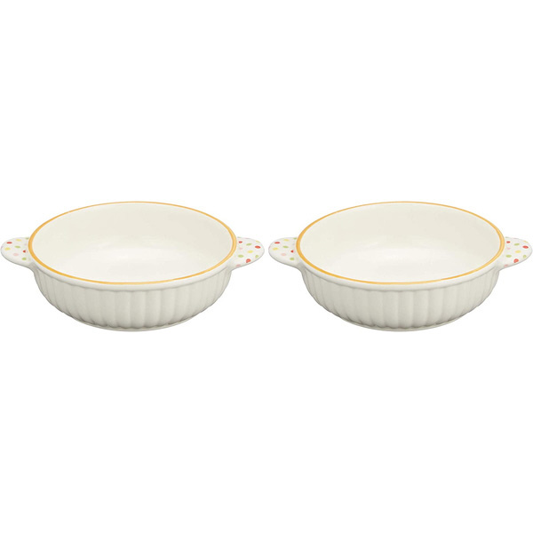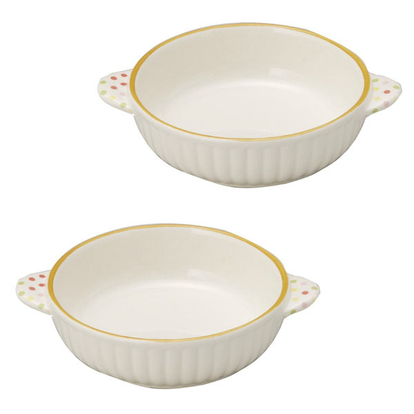 可愛らしい水玉模様とオレンジラインがポイントの萬古焼グラタン皿(小)2個セット。