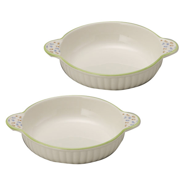 萬古焼 オーブン対応 丸グラタン皿 直径約20.5cm 2個セット 小花 グリーンライン