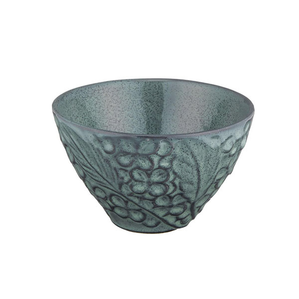 丁寧に彫られたレリーフの花模様としっとり落ち着いた色の器がテーブルシーンを優雅に演出してくれます。
