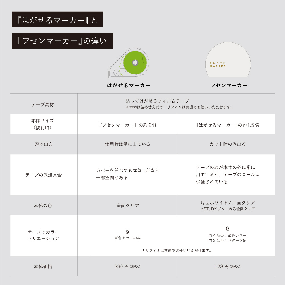 ・対応リフィル:『はがせるマーカー リフィル』『フセンマーカー リフィル』全種