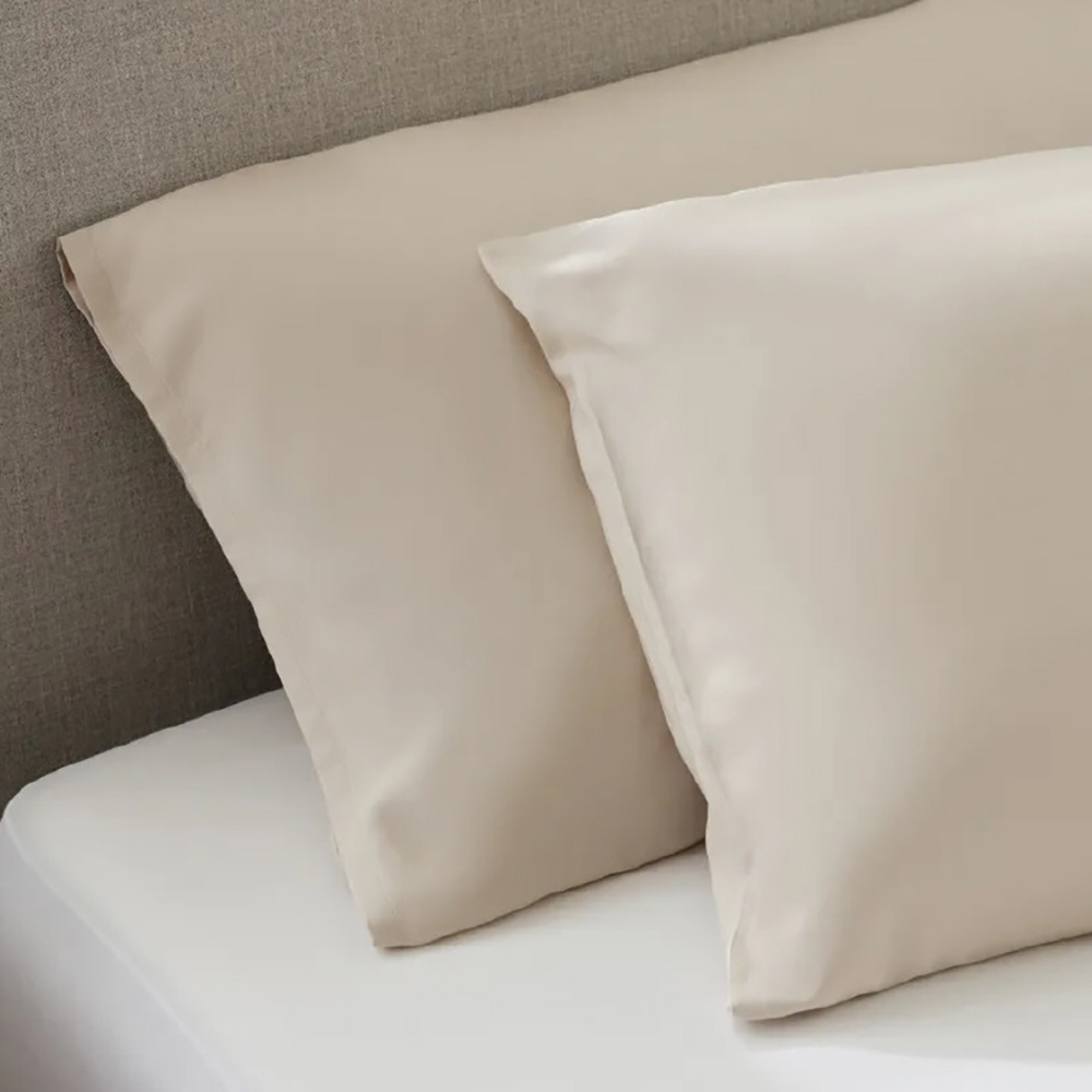 テンセル(TM)リヨセル繊維でできた、シルクのような滑らかさと肌触りの良さが特徴のピローカバー。