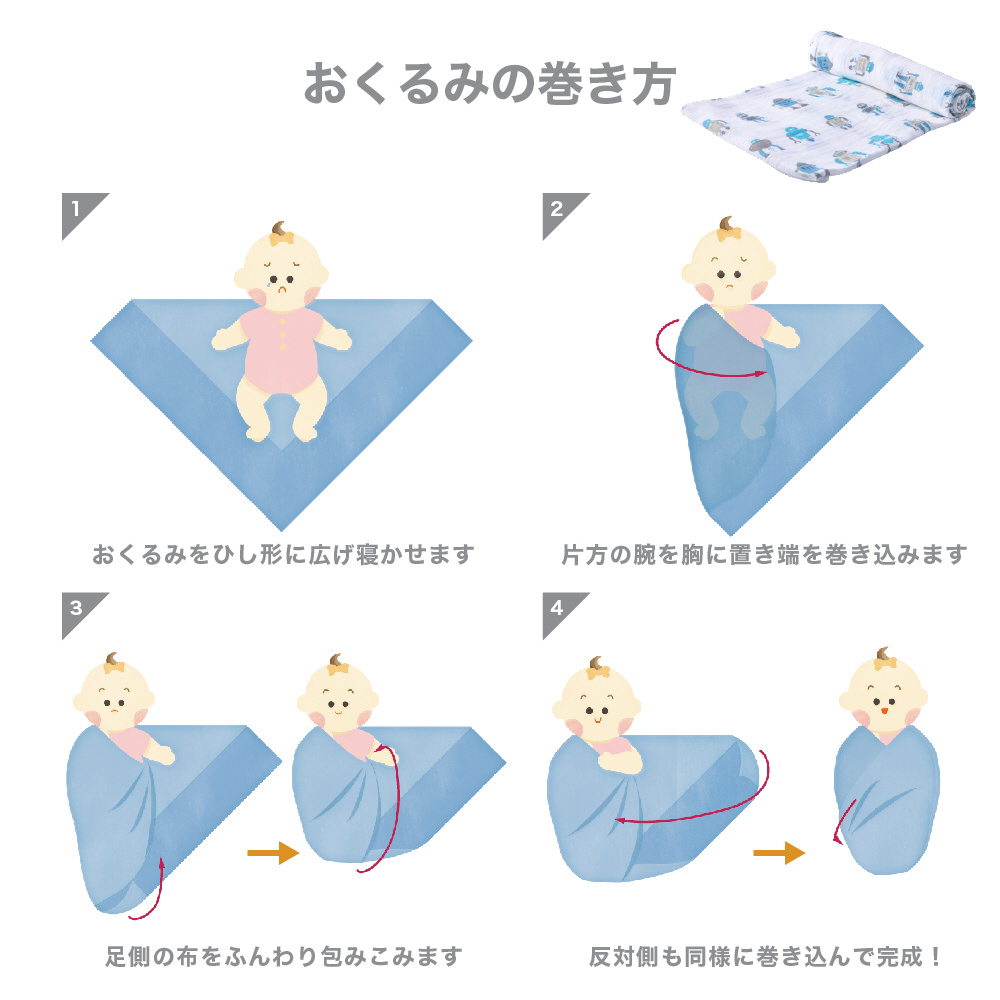コットン100%で丈夫な素材のスワドルです。