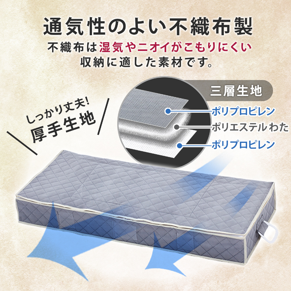 通気性が良くホコリを通しにくい生地のため、衣類や寝具の収納に適しています。