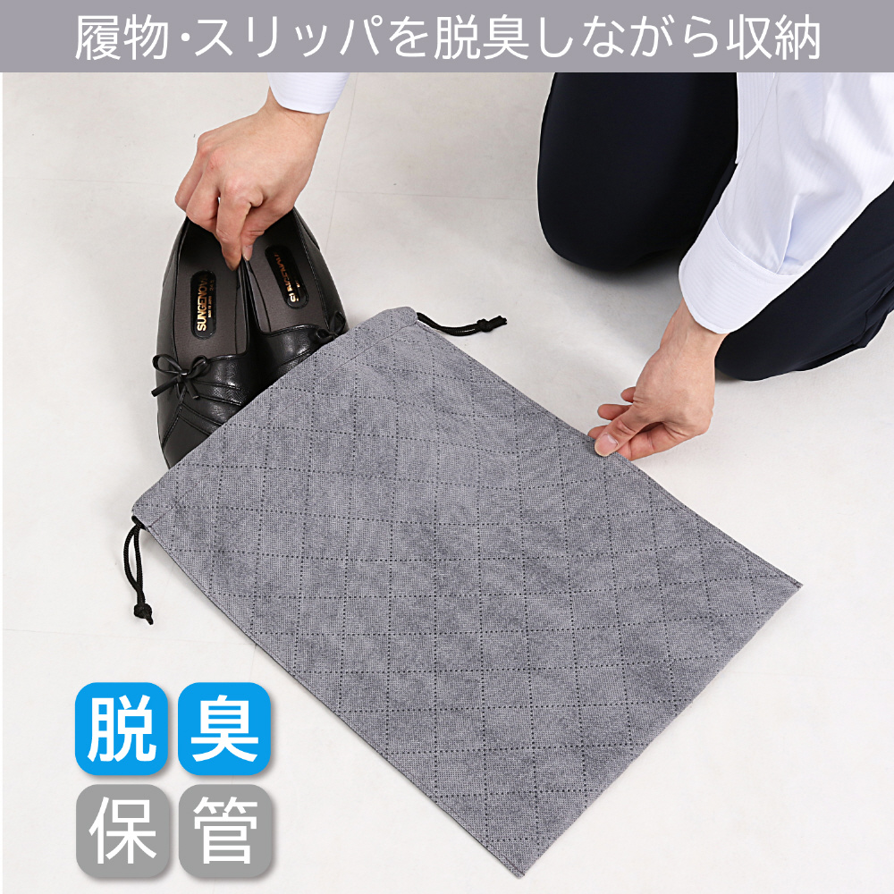 通気性に優れた不織布×活性炭で靴やスリッパ、上履きなどを脱臭しながら保管。