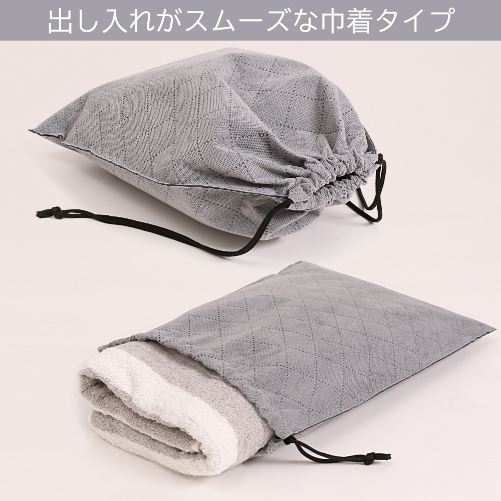 活性炭配合の消臭巾着(グレー)。