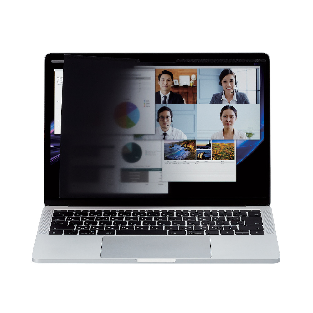移動中やオフィスでの周りからの視線をしっかりガード。簡単に取り外しできるマグネットタイプののぞき見防止フィルター。