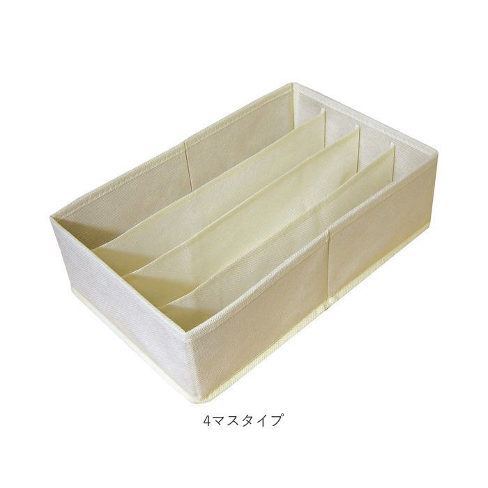 ■横長に仕切られており、フェイスタオルやブラジャーなどを収納しやすい4マスタイプ。