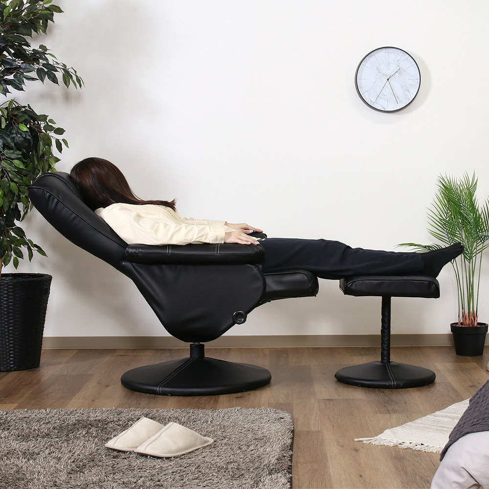背もたれは最大傾斜125度、レバーでお好みの角度に調節できます。