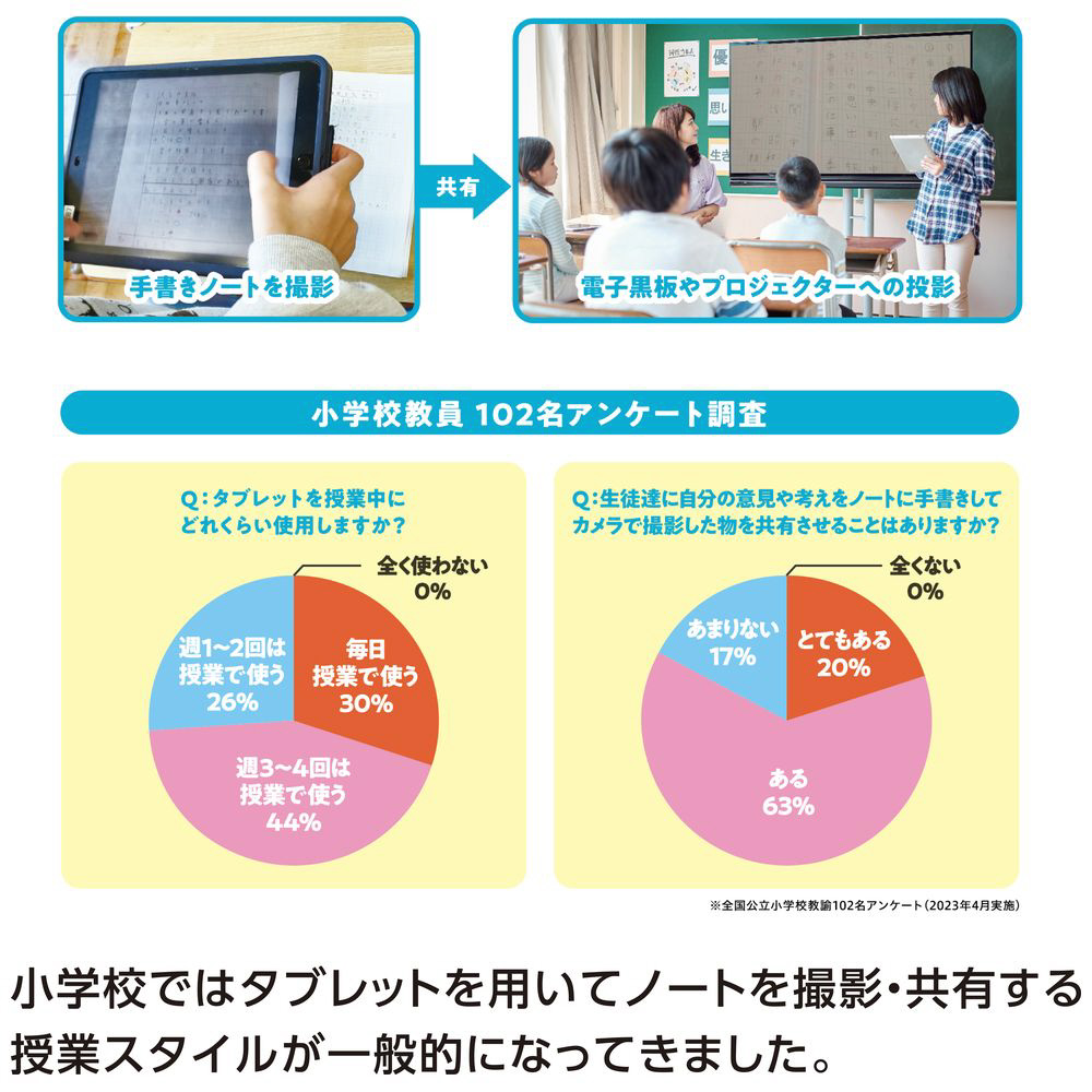 ノートに書いた文字が濃くて見やすく、タブレットで撮影した時やスクリーン投影時でも見やすい!