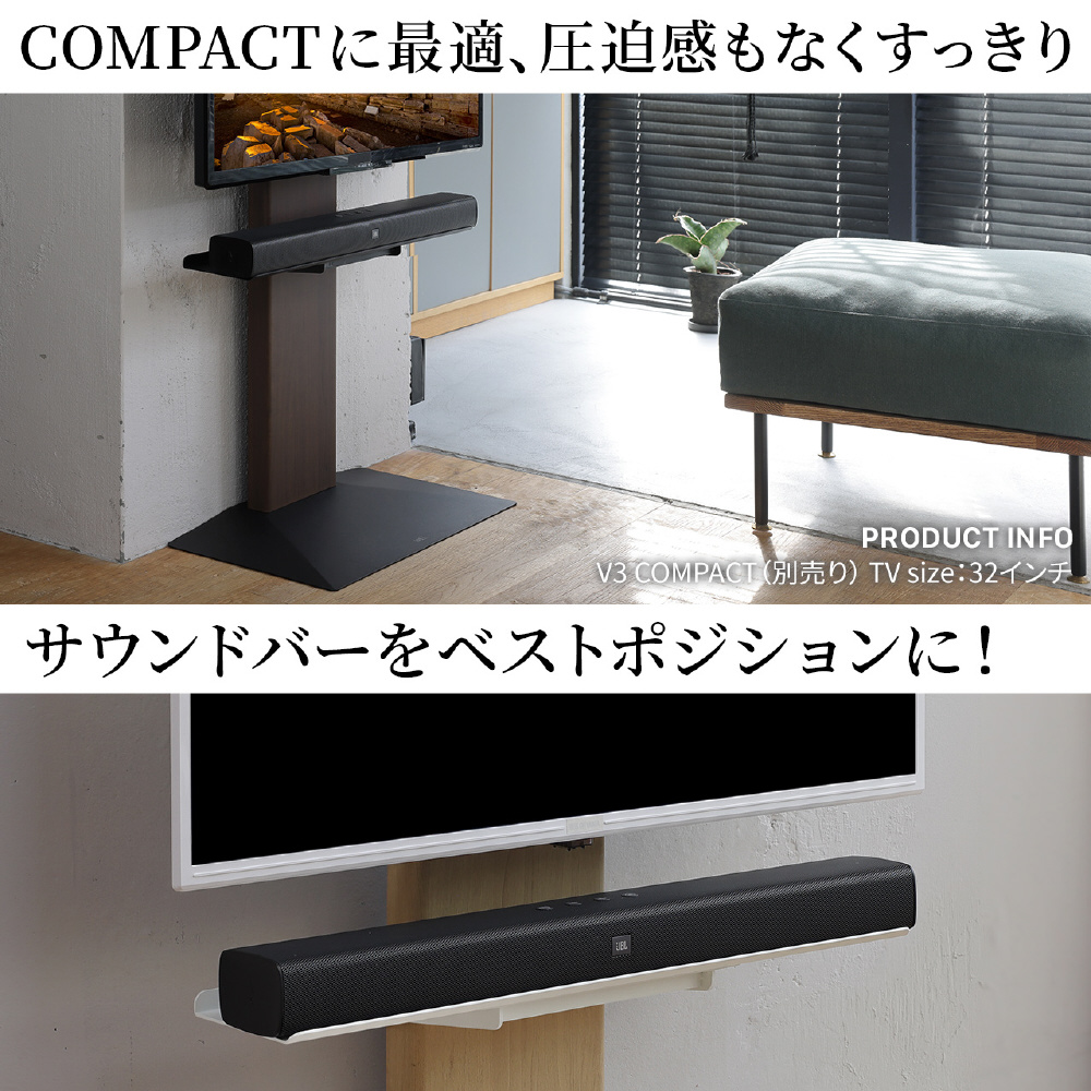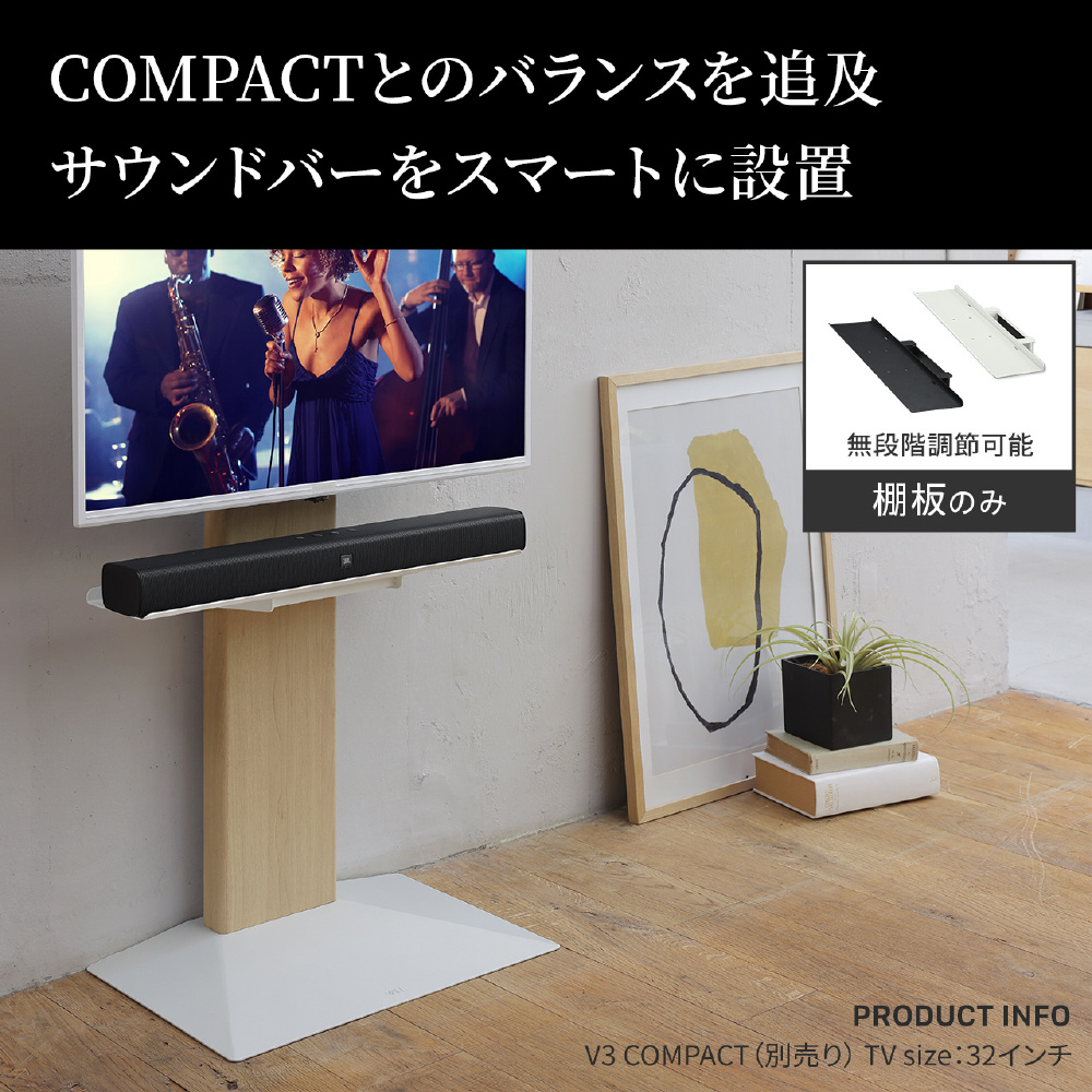 スマート&スモールなテレビスタンド「WAL V3COMPACT/mini」対応のサウドバー棚板オプション。より臨場感のあるサウンドが楽しめるサウンドバー用の棚板です。