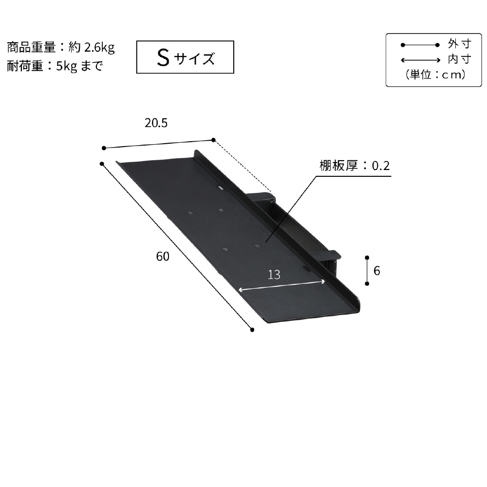 専用棚板と組み合わせて取り付けができます。棚類は合計3枚(合計耐荷重15kg)まで可能。