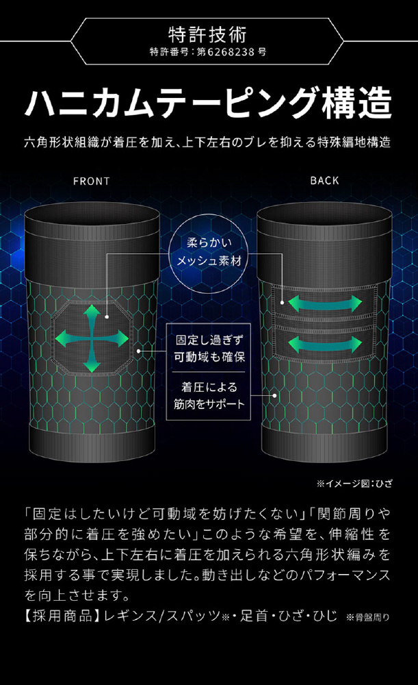 パフォーマンスを支える「特許技術」サポーター