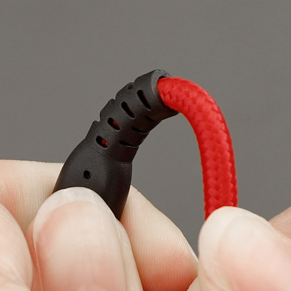 前モデルと同様に、防弾チョッキにも用いられるアラミド繊維を採用。断線に強いのはもちろん、ケーブル内部の配線を細くする代わりに密度を高めることで、今までの『超タフ』になかった「やわらかさ」を実現。「使い始めは硬くて取り回しにくい」といった皆様のご意見を元に改良を加えました。