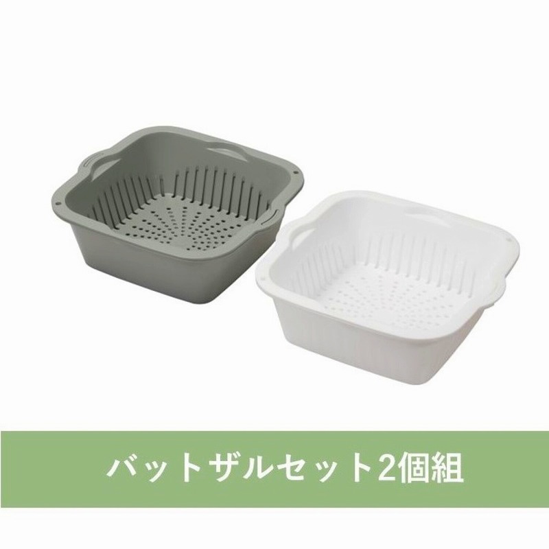 深さがあって使いやすい!バットザルセット2個組バットをふたとしても使えるので、水切りに便利です。交互に積み重ねできるので、収納にも場所を取りません。ご注意: 耐熱温度以下で使用してください。