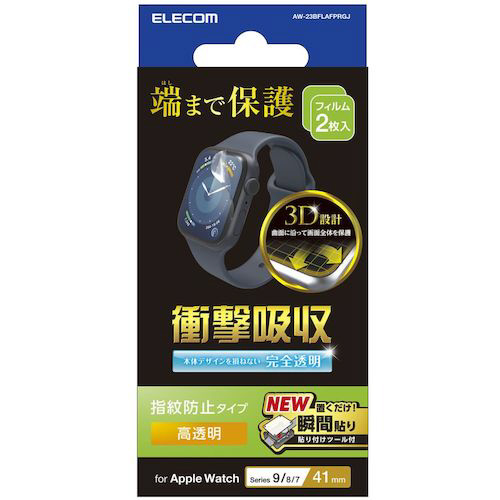 Apple Watch Series 9/8/7 41mm 衝撃吸収フィルム 高透明 指紋防止 治具付 AW-23BFLAFPRGJ