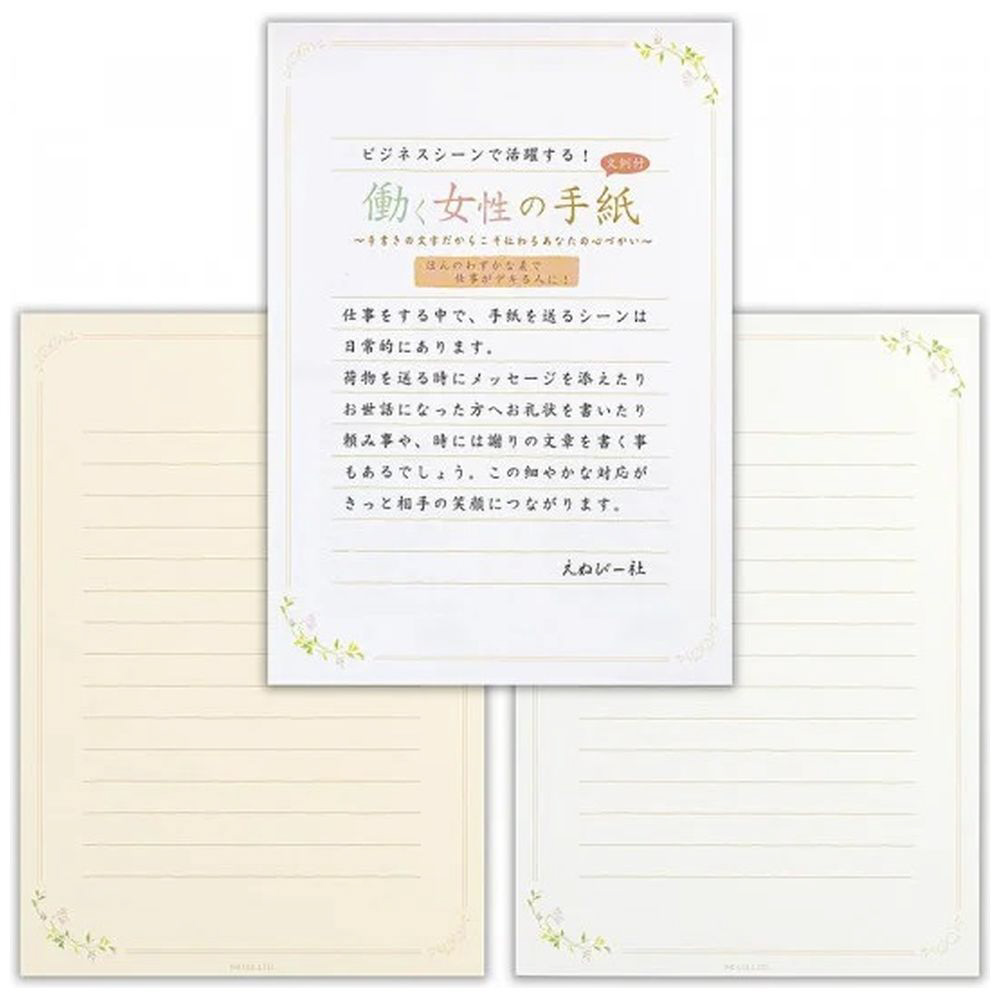 (2色アソート 白 クリーム色 18枚入 大人 シンプル 横書き ビジネス 上品 草花 ヨコ罫 文例付 おしゃれ)