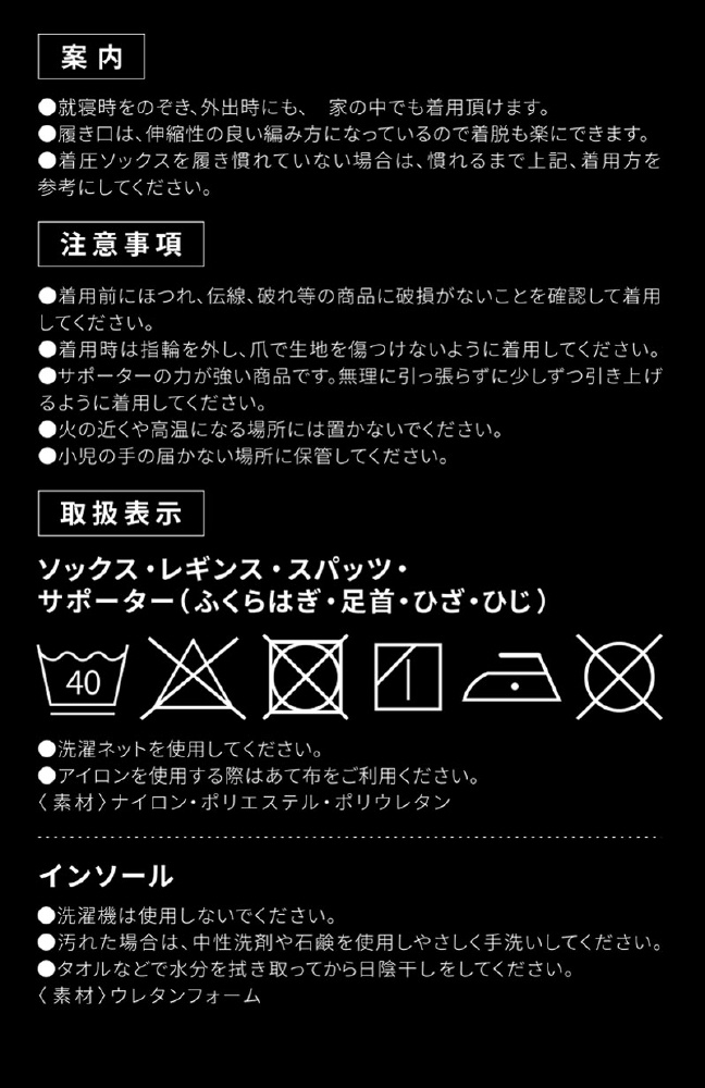 ※ソックスのみインソールのみでもご使用頂けますが、両方合わせてご使用頂くことでより性能が発揮されます。