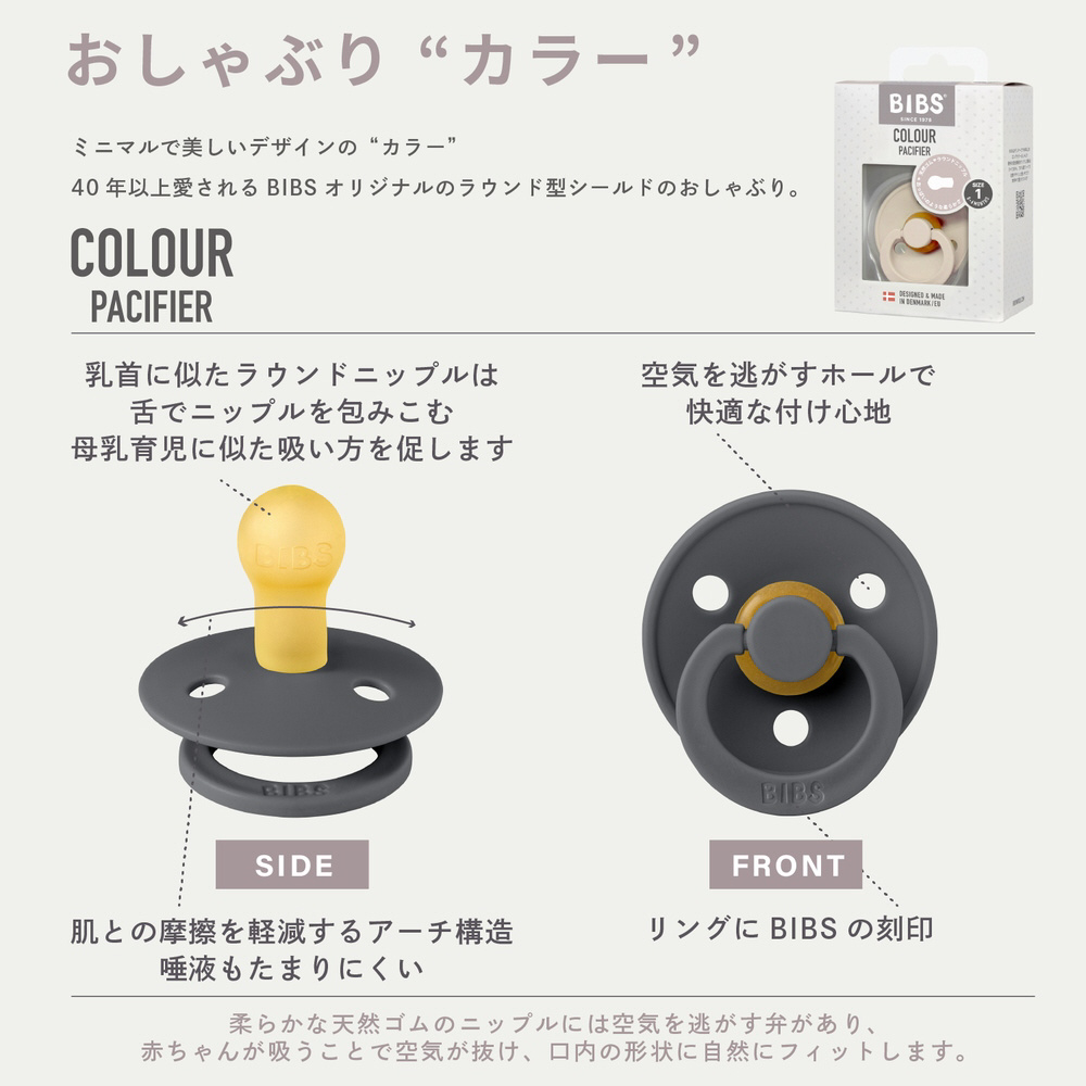 おっぱいのような柔らかさ、デンマークで40年以上の愛される天然ゴムの優しいおしゃぶりです。