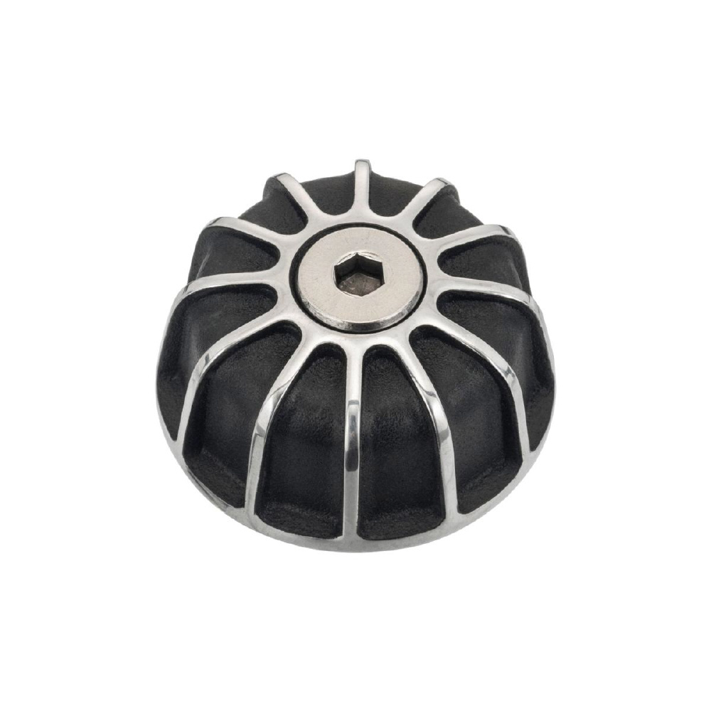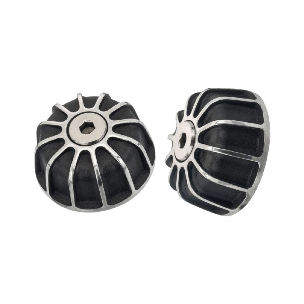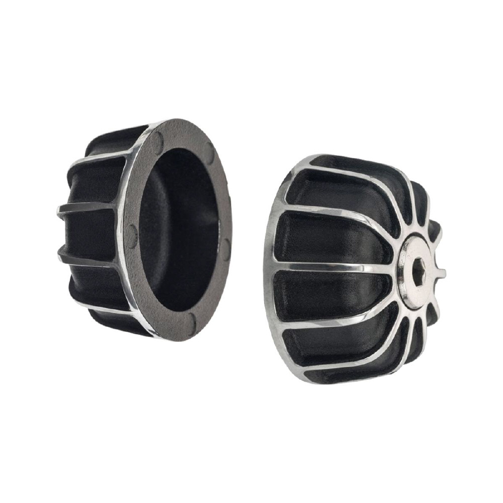 ハンドル周りのワンポイントに最適なリブデザインバーエンド「GEMINI(ジェミニ)」。耐久性と耐食性を両立したA6061アルミダイキャスト製。全体をパウダーブラック(粉体塗装)で仕上げた後に上面のみをポリッシュしたコントラストタイプ。