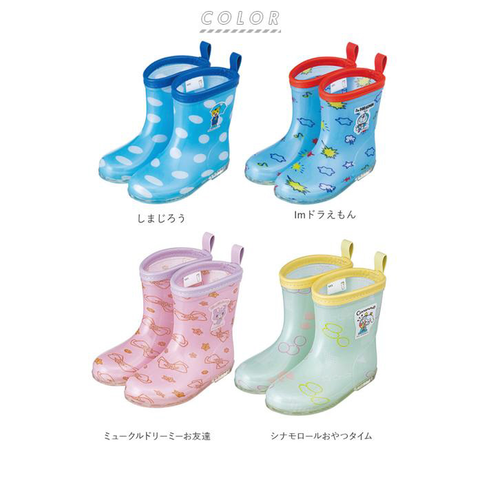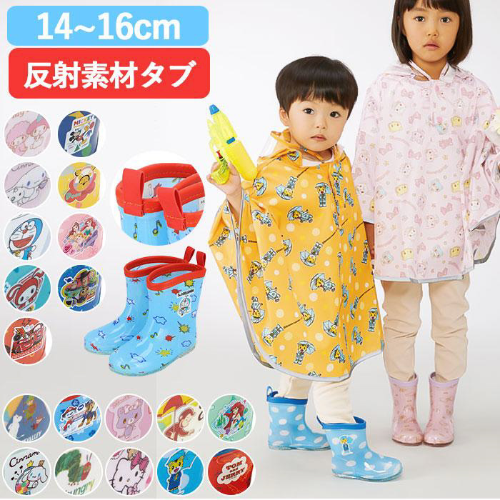 雨の日のお出掛けをもっと楽しくハッピーに!キャラクターの絵柄がかわいいキッズレインブーツ。