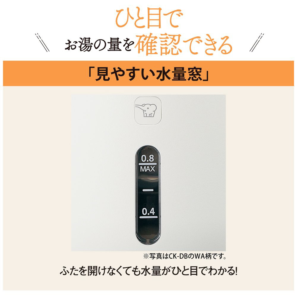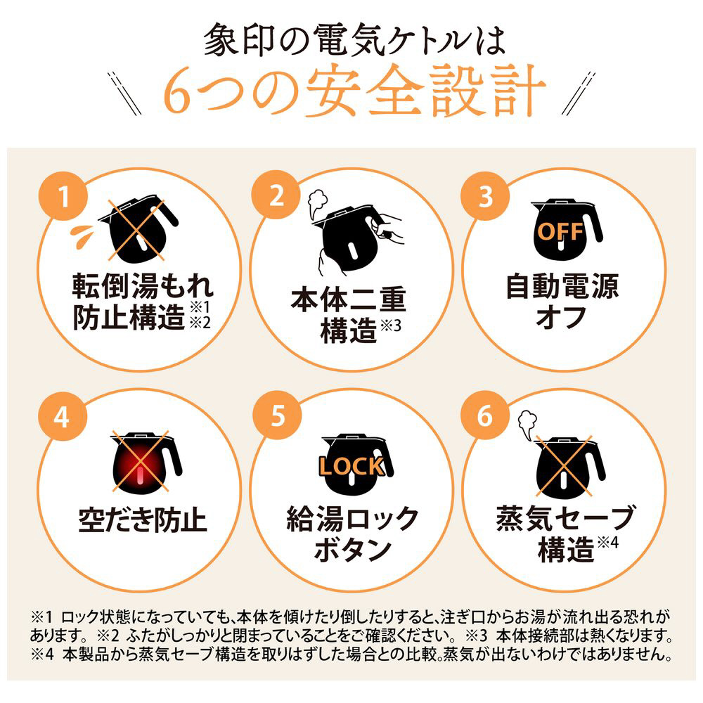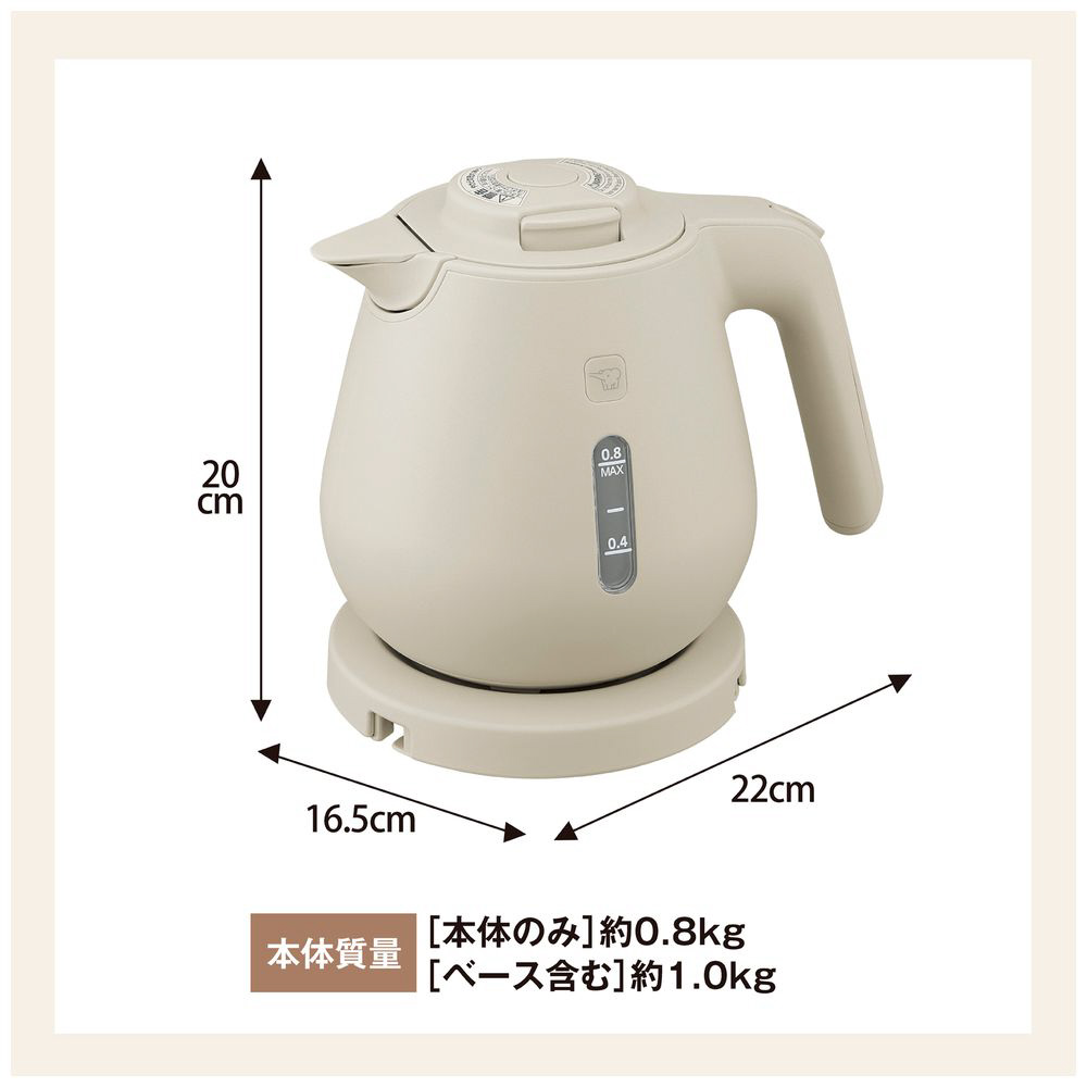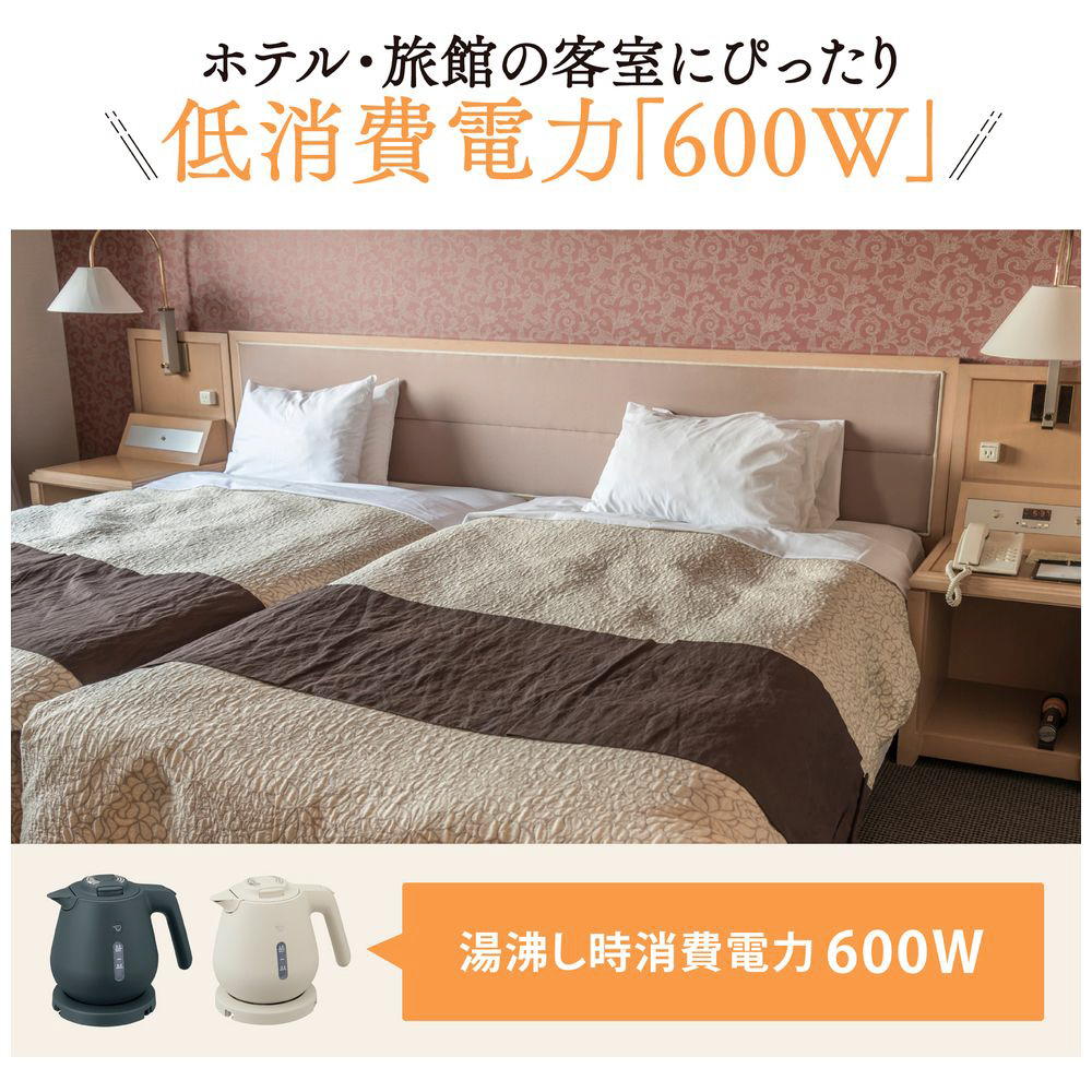 象印の0.8L電気ケトルは、600Wの消費電力で、安全設計と使いやすさを両立。