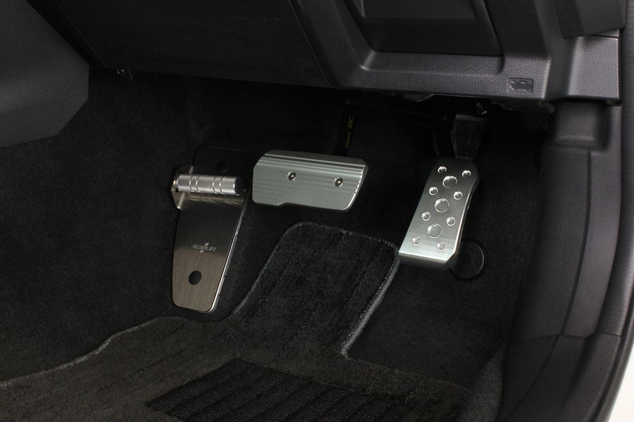 純正アクセルペダルがアクセルレーターからペダルまで一体式の構造となっているため、このアクセルペダルNEOはカバータイプとなりますが、 機能的であることはもちろんのこと、専用ステーやボルト1本にまでこだわることで脱落することのない確実な固定ができる安全設計としています。