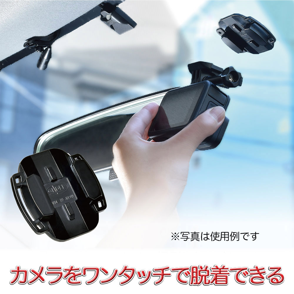車のフロントガラスなどの平面にカメラをマウントさせます。