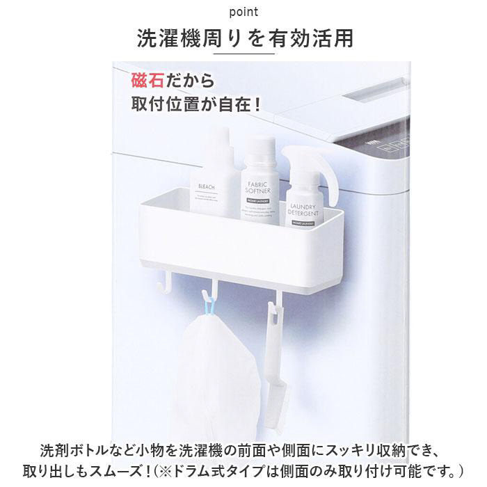 ■洗剤ボトルなど小物を洗濯機の前面や側面にスッキリ収納でき、取り出しもスムーズ!