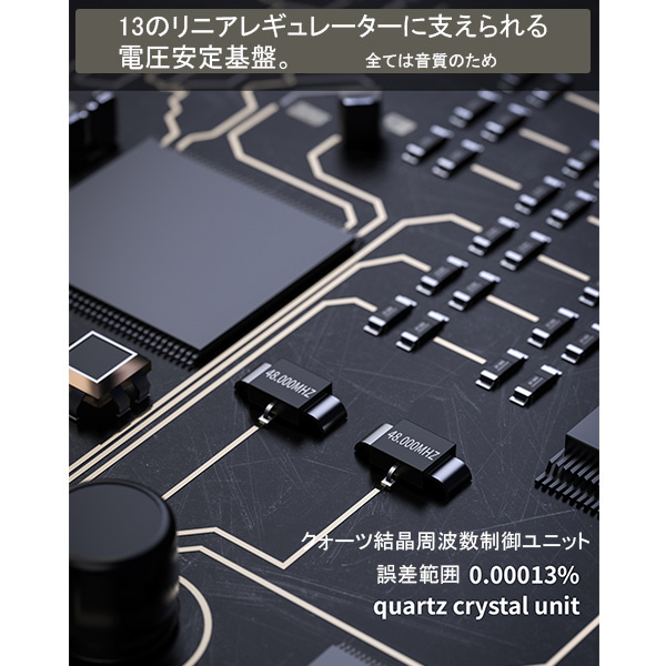 アンプチップES9603Qを搭載しパワフルなポータブルアンプとして機能。接続先端末に依存しない60段階独立ボリュームコントロール採用。