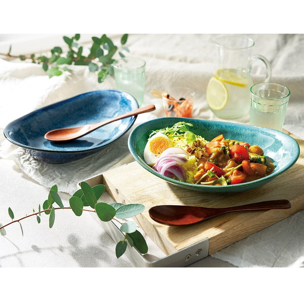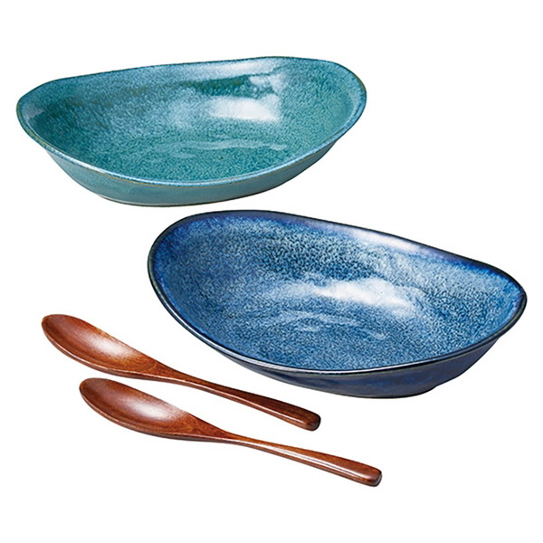 オーバル カレー鉢 皿 木製スプーン付 ペアセット 釉変わり