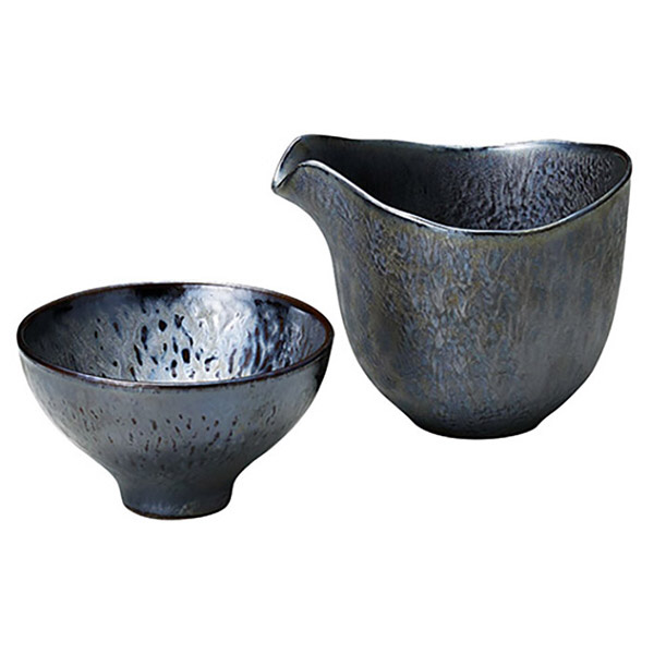 益見窯 酒器 冷酒杯 (冷酒徳利&高台盃)セット 銀彩 シルバー