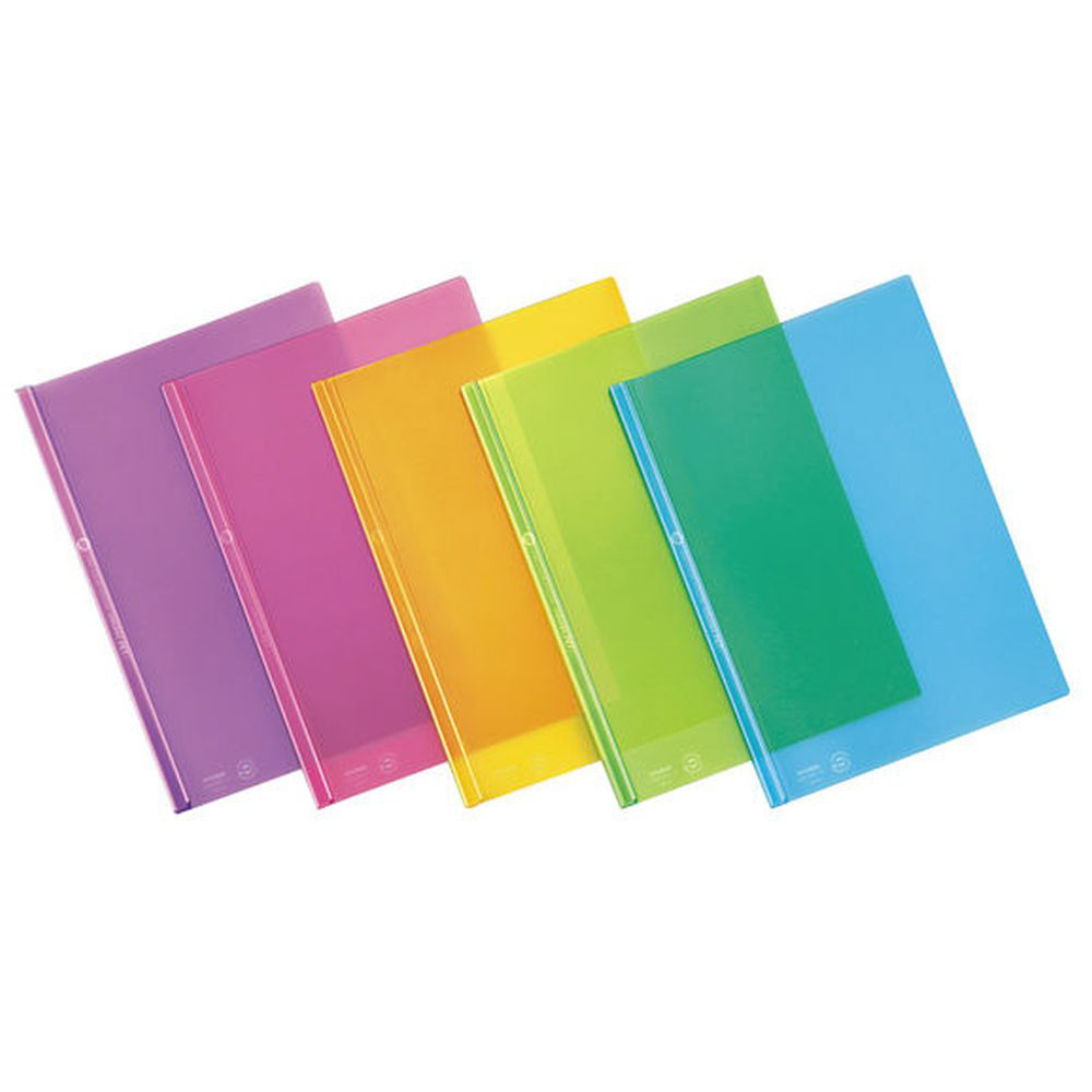 印刷インキによるカールが起きないため、プレゼン用飼料などに最適です。背レールは透明であるため、書類を端まで確認できます。表面が透明、裏面が色透明になっているため、中身の確認が容易であり、色による分類も可能です。