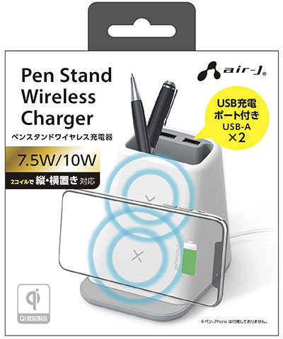 ペンスタンドワイヤレス充電器(USBポート付き) ホワイト AWJPD11WH [2ポート /10W]