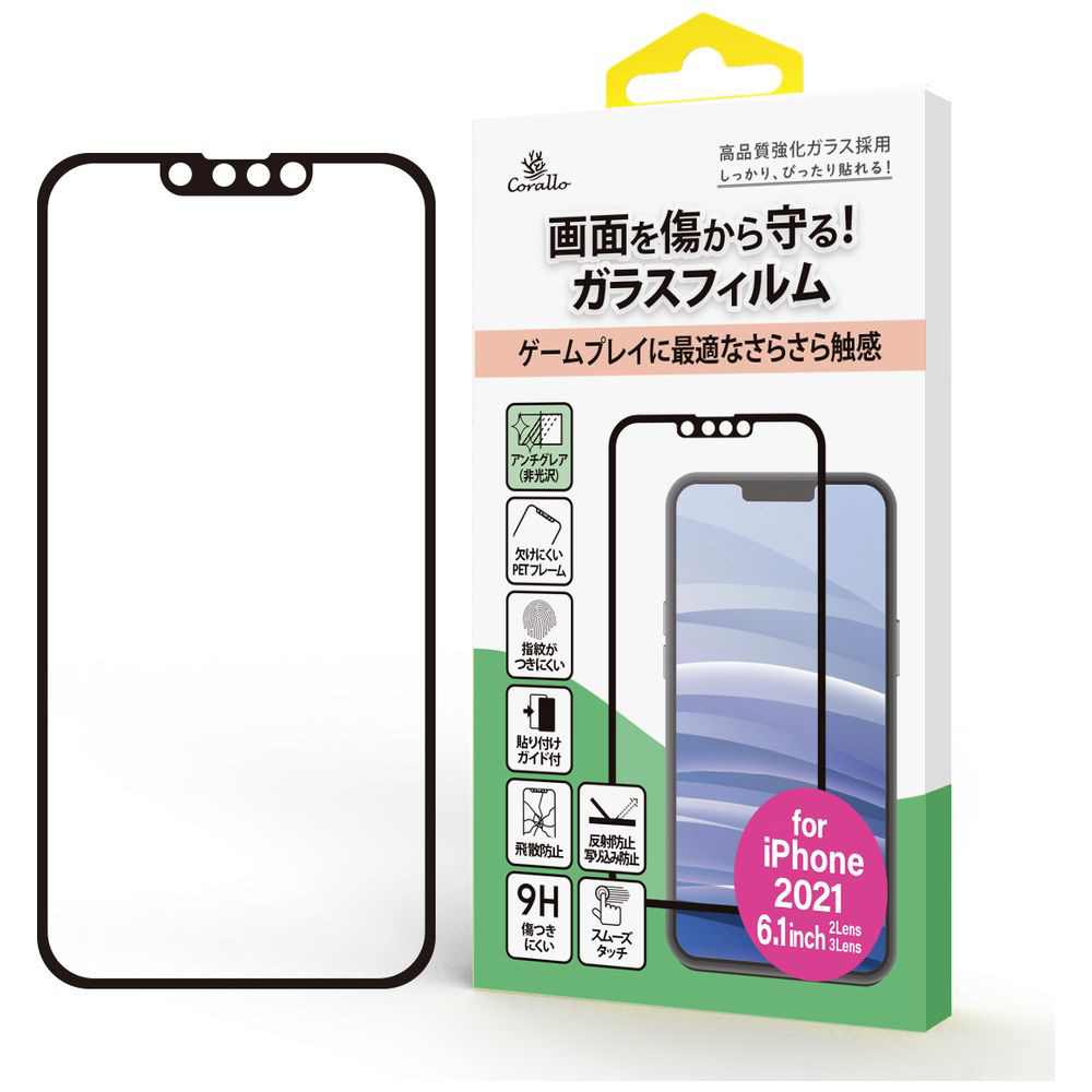 iPhone 13 /iPhone 13 Pro フレーム付ガラスフィルム アンチグレア