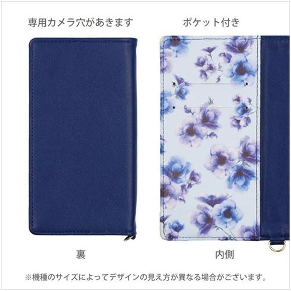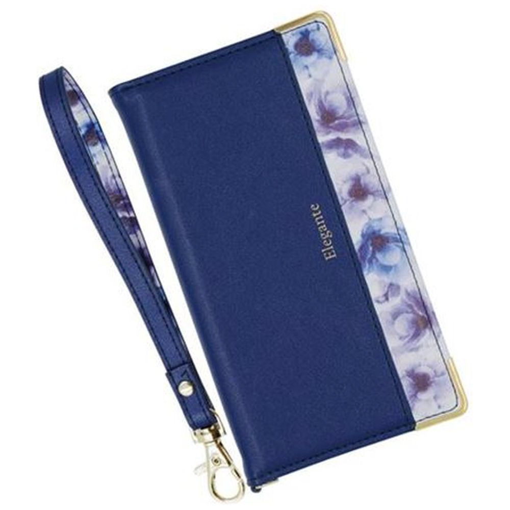 らくらくスマートフォン me(F-01L/F-42A) 手帳型フラワーケース ストラッ Elegante BL-RSME206NV