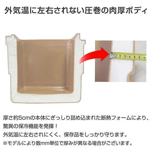 ●約5cmの分厚い本体により抜群の断熱効果を発揮し、最大で5日間も氷を保冷可能。