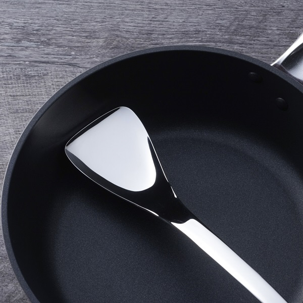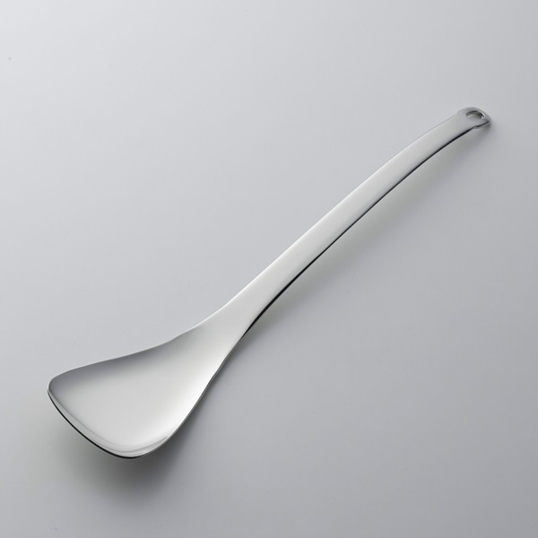 フライパンや大皿からすくい取りやすい先端形状。柄が長いのでフライパンの混ぜ物料理にも便利です。汚れも付きにくい一体形状。